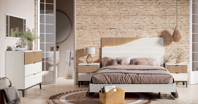 Elegancia en estado puro gracias a la sutil onda acentuada por la iluminación led opcional. Un cabezal que no pasara de ser desapercibido. El acabado Rayado en pequeñas pinceladas y el acabado Nevia crean una atmósfera natural y acogedora